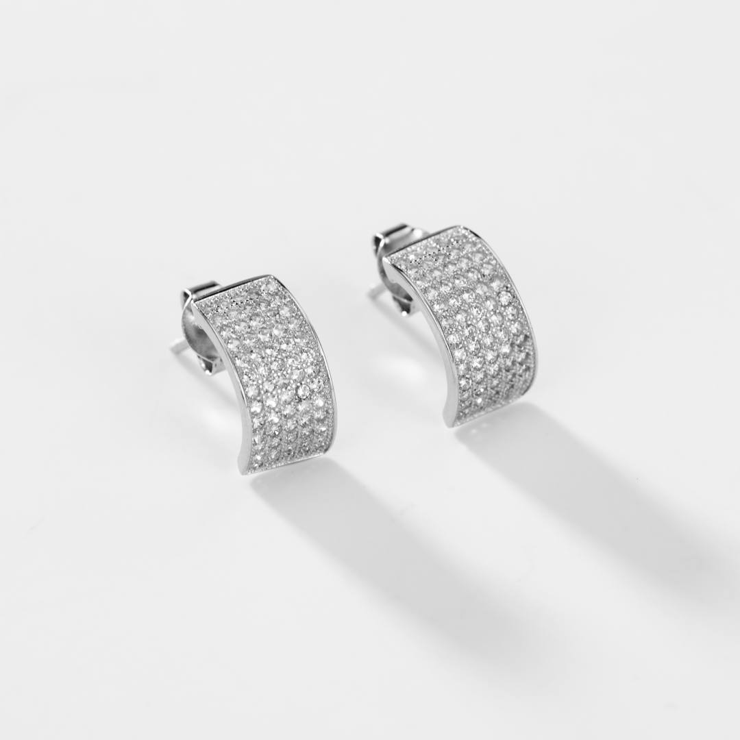 Sichere gerade Linien verschmelzen mit unerwarteten gekrümmten Linien, um die Schönheit der brillanten Steine ??hervorzuheben. Metall: 925 Sterling Silber Höhe: 11 mm Breite: 7 mm Nichel frei
