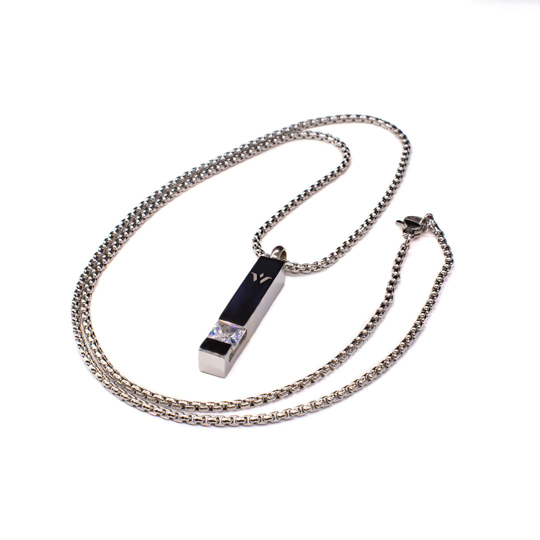 Stahlkette mit Anhänger mit einem eingebetteten quadratischen Kubikzirkonia: Ein Lichtstein, der funkelt und Ihr Licht leuchten lässt. Kettenlänge: 290 mm Anhängerlänge: 35 mm Anhängerbreite: 5 mm